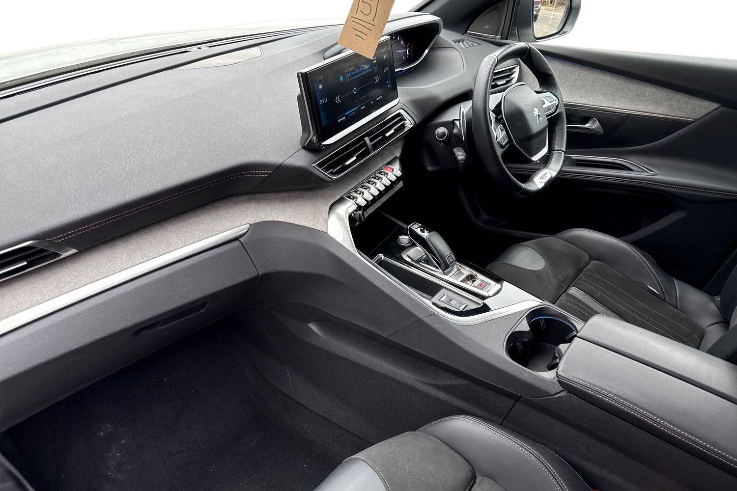 1-3 - 2-3 Folding Rear Seat, 12V Sockets x3 - Dashboard - Rear Cabin and Load Area, 19in Alloy Wheels - San Francisco - Matt Onyx Black - Diamond Cut, 3D Connected Navigation, ABS - Anti-Lock Braking System with REF - Electronic Braking Distribution and AFU - Emergency Braking Assistance, Aikinite Contrast Stitching to Armrest - Gear Lever Gaiter and Dashboard Facia, Air Conditioning - Automatic Dual Zone Climate Control, Airbags - Adaptive Driver and Front Passenger, Airbags - Driver and Front Passenger Side, Airbags - Front and Rear Curtain, Alarm, Aluminium Longitudinal Roof Bars, Aluminium Pedals, Automatic Door Locking When Moving Off, Automatic Hazard Light Activation Upon Heavy Brake Application, Bi-Tuner Radio including DAB - Digital Radio, Blue Ambient Lighting for Connecting Zone, Blue Ambient Lighting to Front Door Panels and Cupholders, Blue Ambient Lighting to Head-Up Instrument Panel, Bluetooth Telephone Facility, Body Protectors in Black, Brumeo Fabric Trimmed Door Armrests, Central Front Armrest with Butterfly-Wing Opening and Illuminated Compartment, Chrome Window Line Trim, DSC - Dynamic Stability Control and ASR - Electronic Anti-Skid System, Dark Tinted Rear Side and Tailgate Windows, Dashboard Trim - Satin Chrome, Digital Instrument Panel Trim - Satin Chrome, Door Mirror Mounted LED Courtesy Approach Lights, Drive Assist Plus Pack, Driver Sport Pack, Driver and Passenger Seat Pack, Driving Time Warning - DAA1, Electric Child Locking Functionality on Rear Windows and Doors, Electric Door Mirrors with Blind Spot Detection Indicator and Auto Dipping Function in Reverse Gear, Electric Parking Brake includes Hill Assist, Electric Power Steering with Reach and Rake Adjustable Steering Column, Electronic Code Immobiliser, Extended Traffic Sign Recognition, Exterior Door Handles - Body-Colour, Exterior Temperature Indicator with Ice Warning, FOCAL Premium 10 Speaker HIFI Speaker System, FOCAL Tweeter Speaker Grilles in Belem Bronze Metal Effect Finish, Flocked Front Door Pocket Interior, Flocked Glove Box Interior, Fog Mode - LED Headlights Switch on Low Beam Headlights with Reduced Intensity when Rear Fog Lights are Activated, Footwell Lighting, Front Ambient Lighting, Front Central Console with Cup-Holder, Front Door Panel Recess Trim - Satin Chrome, Front Door Sills with Stainless Steel Insert Featuring PEUGEOT Lettering, Front Interior Light with Reading Spotlights x2 and Rear Interior Light with Reading Spotlights x2 - with Timer, Front Optimised Safety Headrests and Rear Retractable Headrests - x3 - Height-Adjustable, Front Radiator Grille - Dynamic - Frameless Design, Front Three-Point Retractable Seatbelts - Height-Adjustable with Pre-Tensioners and Force Limiters, Front Windscreen Wiper with Magic Wash Cleaning System, Front Wing Trim - Black with Chrome Detail, Front and Rear Door and Sill Protectors with Polished Stainless Steel Insert, Full LED Headlights with Static Cornering Lighting and Daytime Running Light Extension, GT Emblems - Front Wings and Tailgate, Gear Shift Indicator, Gloss Black B and C Pillar and Aerodynamic Deflector Trim, Gloss Black Front Bumper Air Scoops, Gloss Black Rear Cluster Connecting Strip, Gloss Black Windscreen Trim, Grab Handles x4 - Retractable - Damped, Headlights Left On Audible Warning, Heated Rear Windscreen with Integrated Antenna, Horn - Two Tone, ISOFIX Child Seat Fittings - x3 - In the Front Passenger and Outer Rear Seats, Illuminated Glove Box - Central Storage Area and Load Area, Illuminated Vanity Mirrors, Individual Left and Right Controls Located in Boot for Rear Seat Folding, Interior Door Handles - Satin Chrome, LED Daytime Running Lights - Saber Style with Integrated LED Indicators, LED Front Indicators, LED Interior Lighting, LED Rear Lights including Reversing Lights - Scrolling Indicators and PEUGEOT 3 Claw Effect Light Signature with Daylight Function, LED Rear Number Plate Lighting, LED Side Indicator Lights Integrated into Door Mirrors, Lane Departure Warning System, Lower Front Bumper - SIlver, Map Pockets on Front Seat Backs, Mirror Screen - Apple CarPlay and Android Auto, Mistral Black Floor Mats with Aikinite Contrast Stitching, Mistral Full-Grain Perforated Leather Steering Wheel with Aikinite Stitch Detail and Satin Chrome GT Line Emblem, Mode Selector, Multifunction Trip Computer, One-Touch Electric Front and Rear Windows with Pinch Protection, PEUGEOT Open and Go System, Parking Sensors - Front, Peugeot Connect SOS and Assistance, Peugeot i-Cockpit, Puncture Repair Kit including Compressor - Sealant Cartridge and Towing Eye, Rear Armrest with Ski Flap and Two Cup Holders, Rear Bench Seat with Central Armrest and Ski Hatch, Rear Bumper Facia - Chrome, Rear Centre Console Ventilation System, Rear Coat Hooks x2, Rear Parking Aid, Rear Passenger USB Charging Sockets x2 - Type A, Rear Spoiler - Body Colour with Stainless Steel Edging Trim, Rear Three-Point Retractable Seatbelts x3 - with Pre-Tensioners and Force Limiters in the Outer Rear Seats, Rear Windscreen Wiper Triggered Automatically in Reverse Gear, Remote Control Central Locking, Roof - Black Diamond, Roof Lining - Mistral Black, Scorpions Tail and Toggle Switch Trim - Satin Chrome, Seatbelt Unfastened on the Move Audible and Visual Alert for Front and Rear Seats, Seatbelt not Fastened Audible and Visual Alert for Front Seats, Seating - Driver and Front Passenger Seat Height Adjustment, Seating - Front Passenger Seat - Flat Folding, Seating - Front Passenger Seat Manual Adjustment - Longitudinal and Back Rest Angle, Self Levelling Headlights, Smart Electric Tailgate, Speed Limit Recognition and Recommendation, Stainless Steel Door Sill Scuff Plates, Stainless Steel Roof Arch Trim, Twin Exhaust Effect Trim, Twin USB Charging Sockets - Rear Centre Console, Two-Position Boot Floor, USB Socket, Visibility Pack, Visio Park 2 - 360 Degree Colour Camera System and Automated Parking Assistance