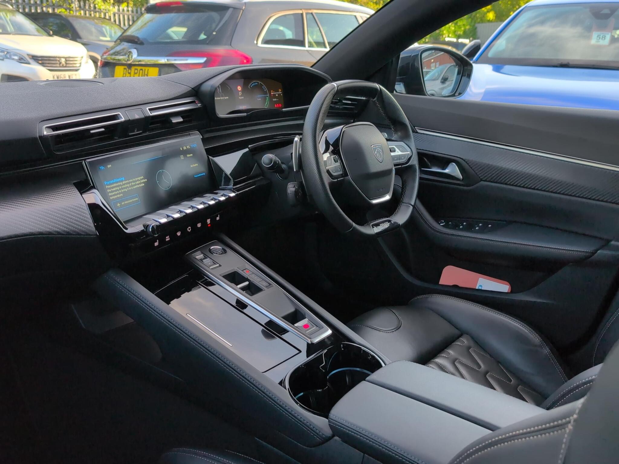 1-3 - 2-3 Folding Rear Seat, 12V Socket x2, 18in Alloy Wheels - Epherra Diamond Cut Two Tone, 3.7KW Monophase On Board Charger, 8-Speaker Radio - MP3 Compatible, ABS - Anti Lock Braking System, Active Bonnet, Aikinite Contrast Stitching to Armrest - Front Centre Console - Door Panels and Dashboard Facia, Airbags - Adaptive Driver and Front Passenger, Airbags - Driver and Front Passenger Side, Airbags - Front and Rear Curtain, Alarm - Perimetric - Volumetric with Lift and Tilt Sensor, Aluminum Front Door Sills with New Black PEUGEOT Lettering, Ambient Lighting to Storage Compartments, Automatic Door Locking When Moving Off, Automatic Dual Zone Climate Control, Automatic Hazard Light Activation Upon Heavy Brake Application, Blue Ambient Lighting to Front Door Panels and Front Centre Console, Bluetooth Telephone Facility, Central Front Armrest with Butterfly-Wing Opening and Illuminated Storage Compartment, DAB Digital Radio, Dark Tinted Rear Side and Tailgate Windows, Dashboard - Front and Rear Door Panel Finish - Carbon Effect, Dashboard Facia - Intricate Stitch Detail, Door Handles - Body Coloured, Door Mirror Mounted LED Courtesy Approach Lights, Door Mirror Shells - Nera Black, Drive Assist Pack Plus - Adaptive Cruise Control with Stop-Go-Lane Positioning Assist, Driver Plip Action, E-toggle Automatic Gear Selector, EBA - Emergency Brake Assist, ESP - Electronic Stability Programme, Eco-Coaching, Electric Child Locking Functionality on Rear Windows and Doors, Electric Parking Brake includes Hill Assist, Electric Power Steering with Reach and Rake Adjustable Steering Column, Electronic Brakeforce Distribution - EBD, Exterior Temperature Indicator with Ice Warning, Flocked Front Door Pocket Interior, Flocked Glove Box Interior with Illumination, Front Central Console with Two Cup-Holders, Front Grille - Body-Coloured Grille with Accents, Front Optimised Safety Headrests and Rear Retractable Headrests - x3 - Height-Adjustable, Front Three-Point Retractable Seatbelts - Height-Adjustable with Pre-Tensioners and Force Limiters, Front Windscreen Wiper with Magic Wash Cleaning System, Front and Rear Carpet Mats with Aikinite Stitch Detail, GT Model Designation Badging, Gloss Black B and C Pillar and Aerodynamic Deflector Trim, Gloss Black Rear Cluster Connecting Strip with PEUGEOT Lettering Signature, Grain Perforated Leather Steering Wheel with PEUGEOT Shield and Black-Aikinite Stitch Detail - Satin Chrome GT Emblem, Headlights Left On Audible Warning, Heated Rear Windscreen with Integrated Antenna, ISOFIX Child Seat Fittings - x2 in the Outer Rear Seat, Indirect Tyre Under-Inflation Detection, Interior LED Lighting, Interior LED Lighting Plus, LED Daytime Running Lights, LED Front Indicators, LED Side Indicator Lights Integrated into Door Mirrors, Locking Wheel Bolts, Map Pockets on Front Seat Backs, Mirror Screen - Apple CarPlay and Android Auto, Mode 3 Type 2 Cable for Wallbox Charging, Model Designation Badges - Front and Rear, Multifunction Trip Computer, One-Touch Electric Front and Rear Windows with Pinch Protection, PEUGEOT Open and Go System, PEUGEOT i-Connect Advanced, Parking Sensors - Front and Rear with Flankguard Protection, Pedals and Foot Rest - Aluminium, Peugeot Connect SOS and Assistance, Peugeot Matrix LED Headlights - DRLs with -3 Claws- Lighting Signature, Peugeot i-Cockpit, Piano Keys - Chrome Plated Toggle Switches to Access Touchscreen Functions, Power Folding Door Mirrors with Blind Spot Detection Indicator and Electrochrome-Auto Dimming Function, Puncture Repair Kit, Rear Armrest with Ski Flap and Two Cup Holders, Rear Centre Console Ventilation System, Rear Coat Hooks x2, Rear Fog Light, Rear LED 3D Peugeot Signature Claw Effect Lights with Daylight Function and Scrolling LED Direction Indicators, Rear Lower Bumper Gloss Black Diffuser Effect Trim, Rear Number Plate Lights x2, Rear Reversing Lights, Rear Three-Point Retractable Seatbelts x3 - with Pre-Tensioners and Force Limiters in the Outer Rear Seats, Remote Central Locking - Two Remotes, Roof Lining - Mistral Black, Safety Plus Pack, Seating - Driver and Front Passenger Seat Adjustable Cushion Nose, Seats - Front Electric Lumbar Adjustment, Seats - Heated Front, Side Window Trim - Gloss Black, Thermal Preconditioning of the Vehicle, USB-A Socket x2 - Rear 12V, USB-C Socket x2 - Front, Visibility Pack, Visio Park 2 - 360 Degree HD Colour Camera System, Voice Recognition - Radio-Navigation-Telephony Features, Warning Triangle
